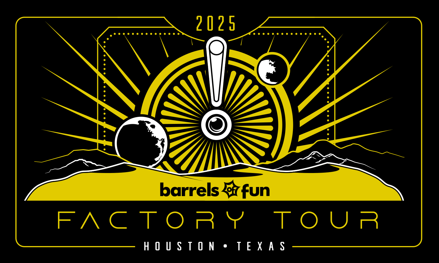 | NEW MERCH & SWAG BAGS FEATURING OUR 2025 FACTORY TOUR DUNE ART! Tour guests will each receive an exclusive swag bag and have the opportunity to purchase factory-exclusive t-shirts, playfield seconds, game banners, merch, and more! GET YOUR TICKETS BEFORE THEY SELL OUT! Tours will be $25.00 per person and include charter bus transportation to the Barrels of Fun factory from the Houston Marriott Westchase, as well as include an exclusive swag bag. Tour TimeslotsSaturday, November 15, 2025 9:00 AM TourBUS DEPARTURE TO THE FACTORY 10:30 AM TourBUS DEPARTURE TO THE FACTORY 12:00 PM TourBUS DEPARTURE TO THE FACTORY |