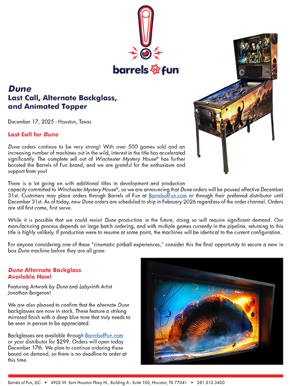 The fifth major code update for Dune Pinball features an exciting Bene Gesserit award mode from one of the…